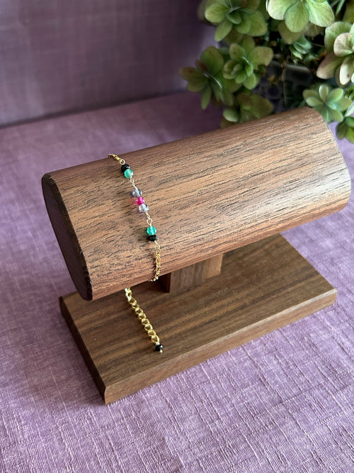 Colorful Gemstone Beaded Bracelet - Black, Green, Purple & Pink
